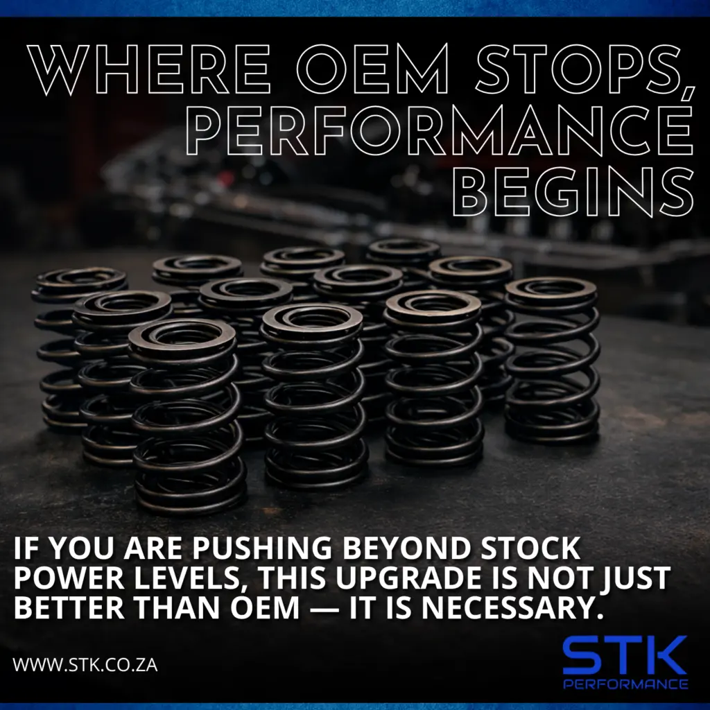 When engine speed increases beyond factory parameters, stock springs can struggle to maintain precise valve control. The STK dual-spring design significantly improves valve stability, allowing the engine to rev higher while maintaining accurate valve timing.